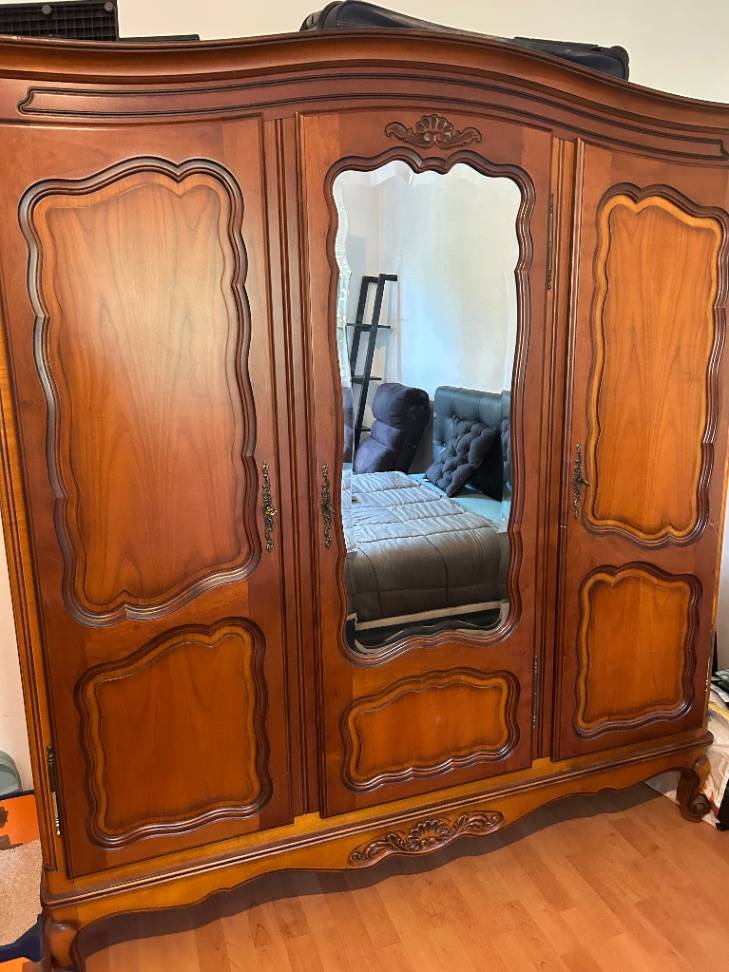 Armoire en merisier sans aucun défaut et miroir intact ! À démonter et récupérer sur place !