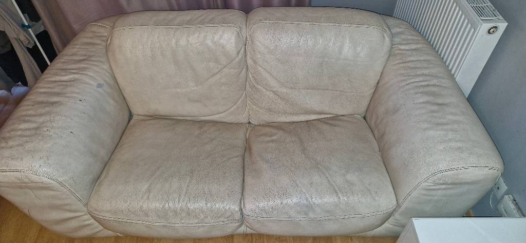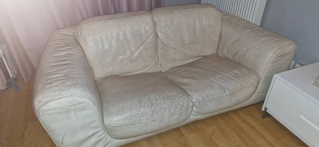 Je donne 2 canapés en cuir beige.