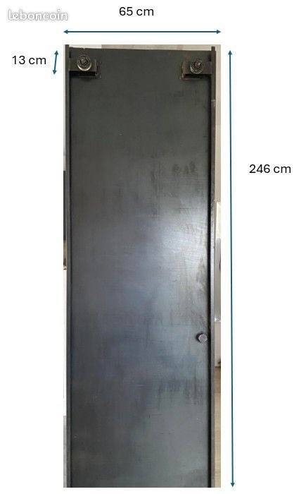 Dimensions : hauteur 246 x largeur d’une porte 65 x hauteur entre le haut de la porte et le rail supérieur 13 cm.