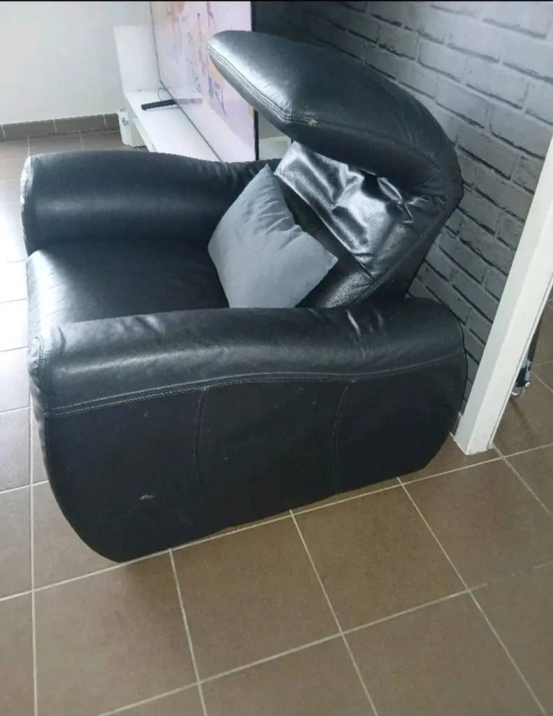 Donne fauteuil en cuir inclinable appuie tête cassé voir photo sinon bon état