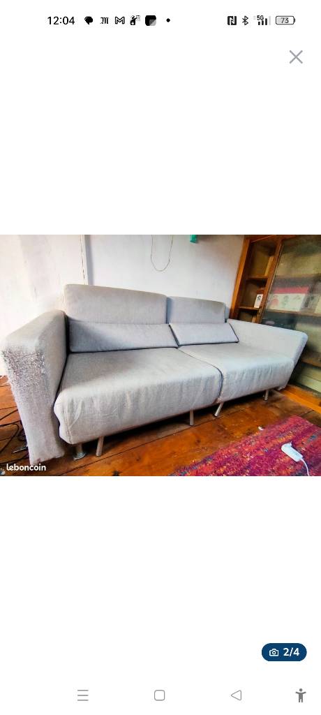 URGENT donne canapé lit de la marque Bo Concept. Il se met en méridienne ou en lit au choix. Notre Chat a fait ses griffes sur l’accoudoir, c’est pour cela qu’on le donne, mais il est encore à 600 eur sur le bon coin. Déjà démonté. Il doit partir avant le 2 avril!