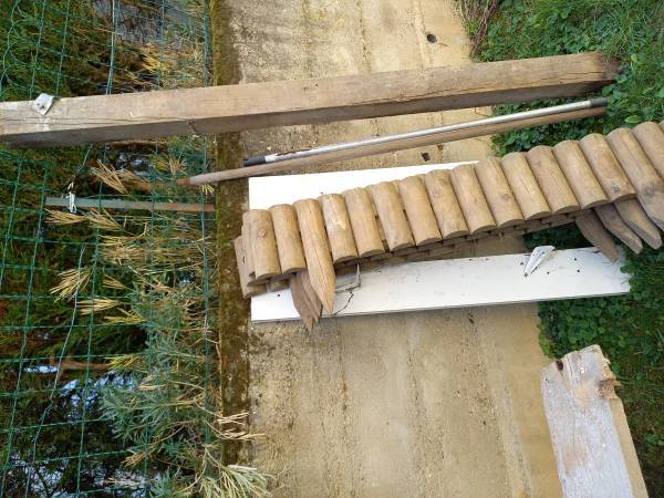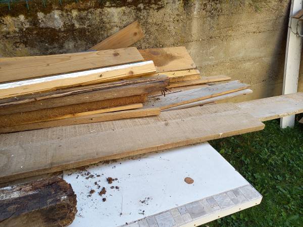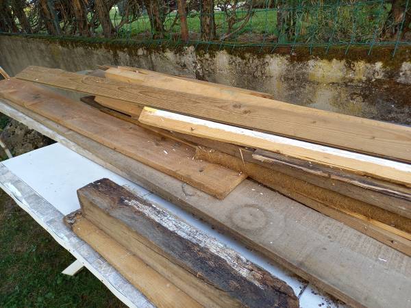 Donne diverses planches et tassots, une table basse et un haut de buffet.